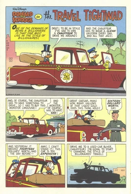Donald est le conducteur de la nouvelle voiture de Picsou. Celui-ci se plaint d'avoir beaucoup à dépenser pour la voiture et l'uniforme de son neveu.