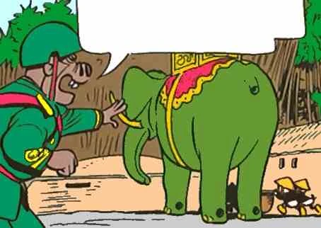 Balthazar Picsou et ses neveux rencontrèrent un homme, Soja, qui prétendait venir de Toufoul-Kang, une ville du Viêt Nam. En effet, le milliardaire avait acheté un énorme éléphant de jade, mais il découvrit que son éléphant avait disparu et qu'il y avait à la place le jeune homme, qui voulait échapper à la terrible guerre du Viêt Nam. Mais Soja parla à Picsou du mythique trésor de Marco Polo, se trouvant dans son pays, et, quelques heures plus tard, les canards et Soja étaient en route pour le Viet Nâm. Mais là-bas, il y avait la guerre, ce qui effraya le pauvre Picsou, qui voulut se plaindre à l'ambassade de Donaldville, alors que celle-ci explosa avant qu'il puisse y aller. Lui et ses neveux essayèrent donc de contrer le régime totalitaire de Kitu-Tou pour essayer de retrouver l'éléphant de jade et le trésor de Marco Polo.