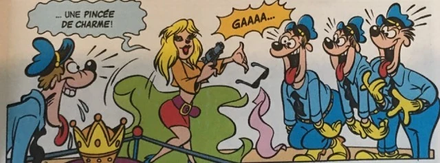 La voleuse est une chienne usant de ses charmes sur les différents agents de sécurité de Donaldville afin de pouvoir subtiliser des objets ayant énormément de valeur.
