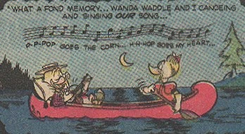 Wanda Waddle était un amour de jeunesse de Balthazar Picsou. À l'époque, elle séduisît le futur milliardaire en chantant la chanson Pop Goes the Corn, accompagnée de Picsou qui jouait de la guitare. Picsou se souvînt d'elle au XXème siècle, alors qu'un de ses employés chantonnait Pop Goes the Corn.