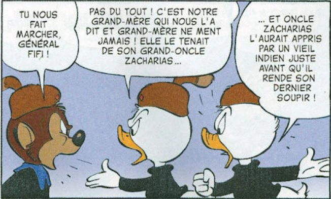 Zacharias a été cité par Carl Barks et Kay Wright en 1972 dans son histoire L'or des Castors Juniors.