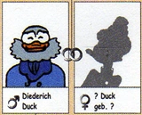 Zacharias en compagnie de son épouse anonyme dans l'arbre généalogique allemand Der Stammbaum der Ducks.
